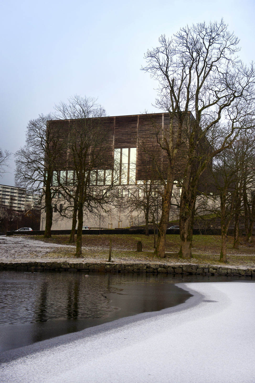 – Når det er fuktig blir den mørkere, og i kuldeperioder ser bygget ut som et vinterlig eventyrslott! Arkitekten har også satset mye på trematerialer i de innvendige publikumsarealene, som er åpne, lyse lokaler med god takhøyde. Her stortrives vi, sier Masdalen.