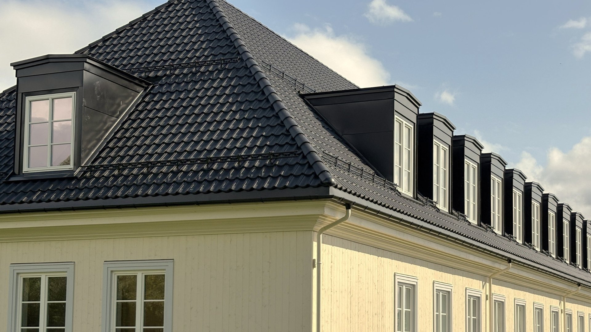 – Vi er en stolt Made in Norway-bedrift. Derfor har bygget et tydelig norsk fotavtrykk, fra Moelven-kledning med skjult innfesting til ytterdører, takstein, beslag, utskåret gesimskasse, rekkverk, omramming og dekor levert av fagmiljøer fra ulike deler av landet.