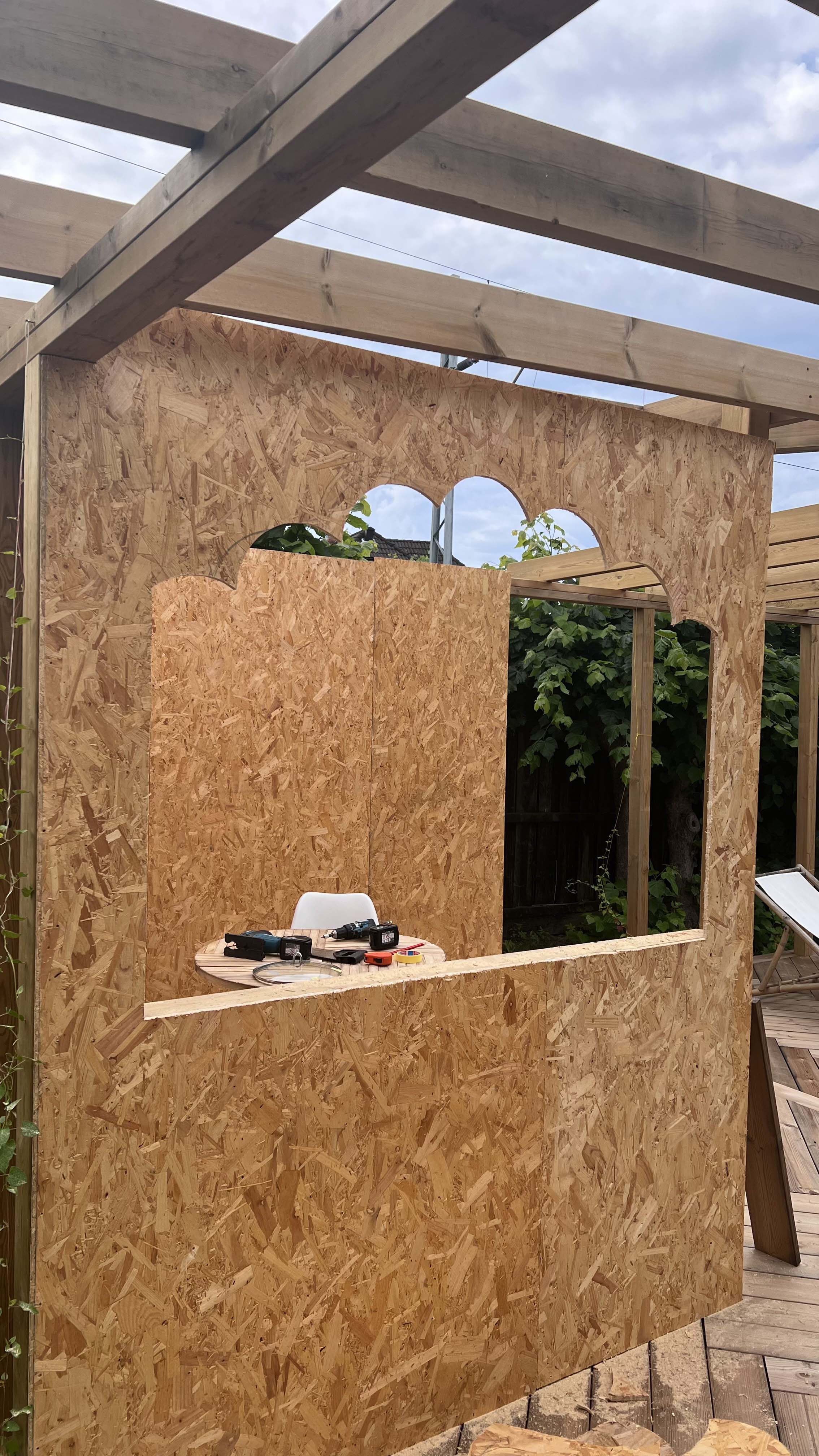 Terrassen er ikke bare et sted for avslapning – det er også en sosial møteplass. For å skape den ultimate utestemningen har paret bygget en egen bar.