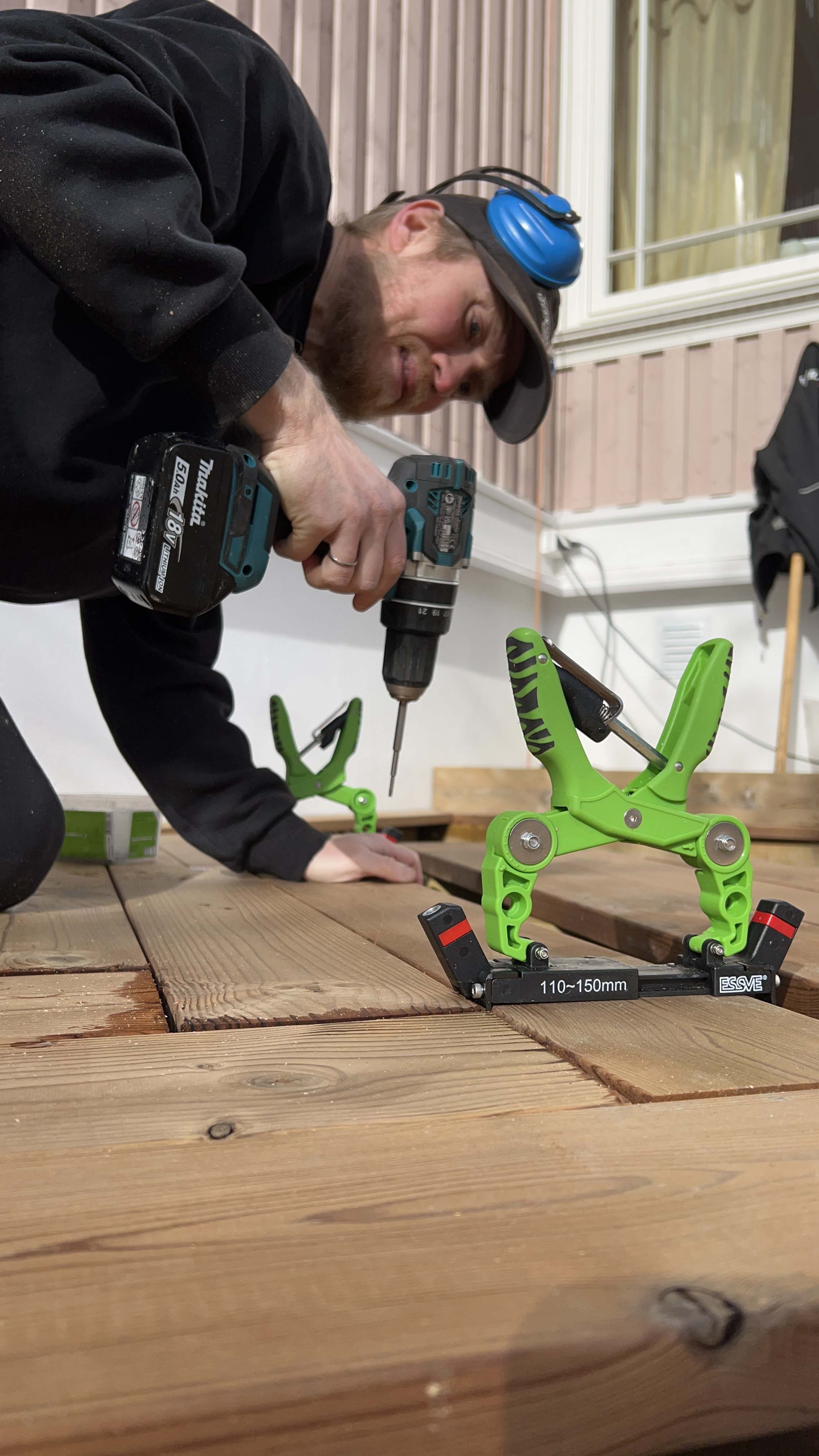 For å gi terrassen et unikt uttrykk, valgte de å legge terrassebordene i et fiskebensmønster.