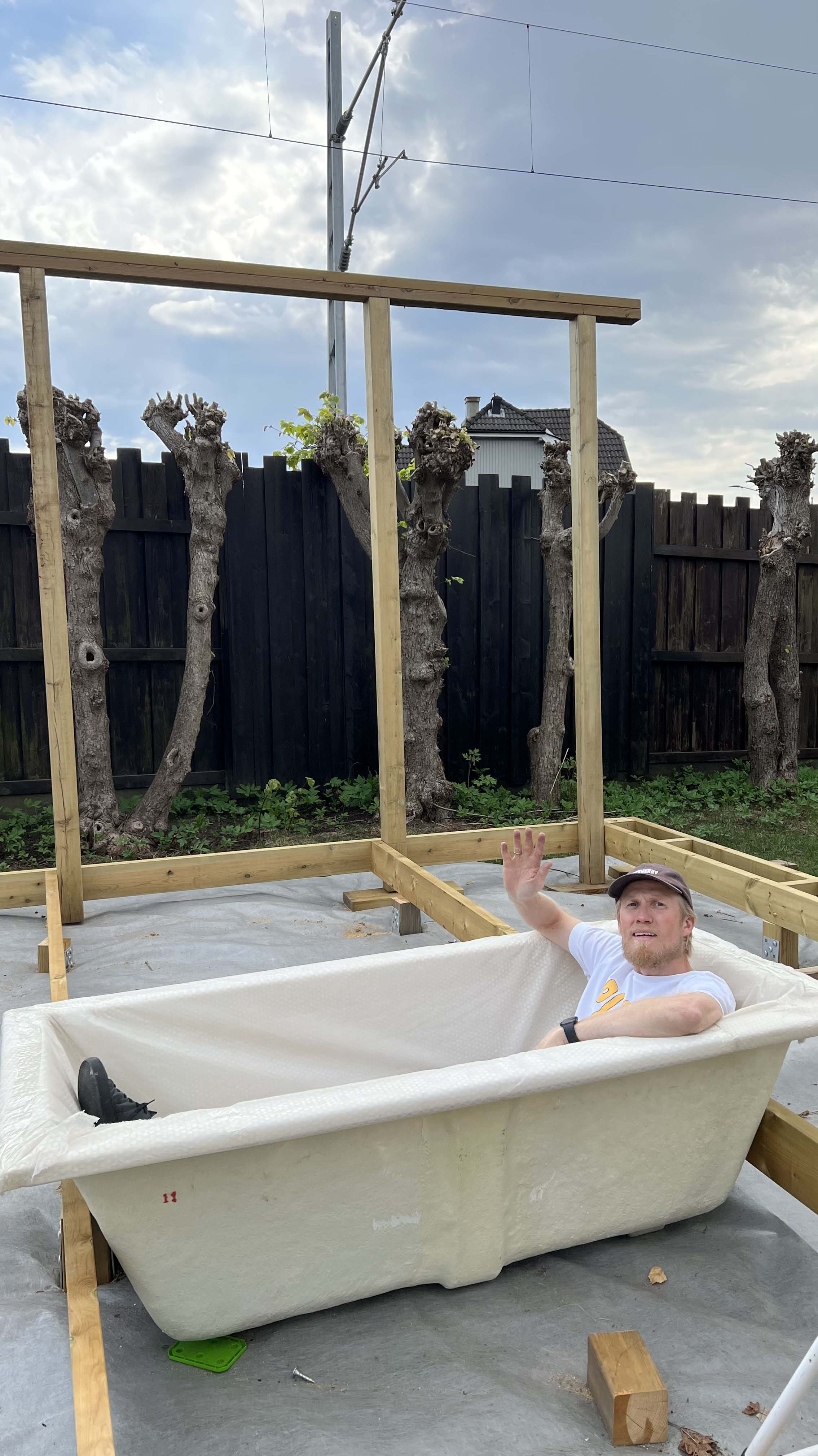 Badekaret som er bygget inn i terrrassen er i flittig bruk.