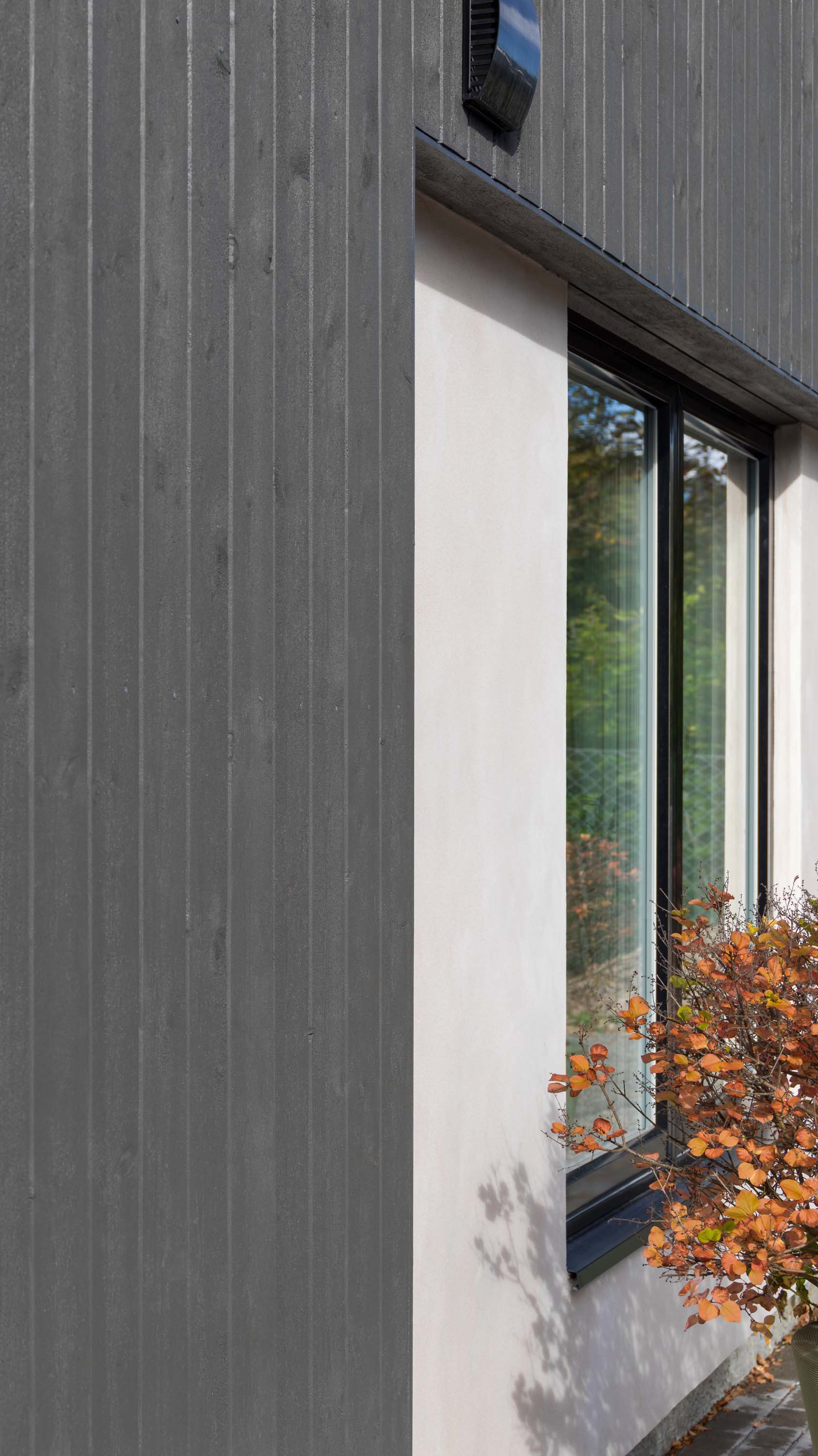 NYHET! Ferdigmalt grankledning, grunnet med Jotun Ind VISIR og påført 2 strøk Jotun Ind DRYGOLIN Nordic Extreme. Kan stå inntil 8 år før overmaling.