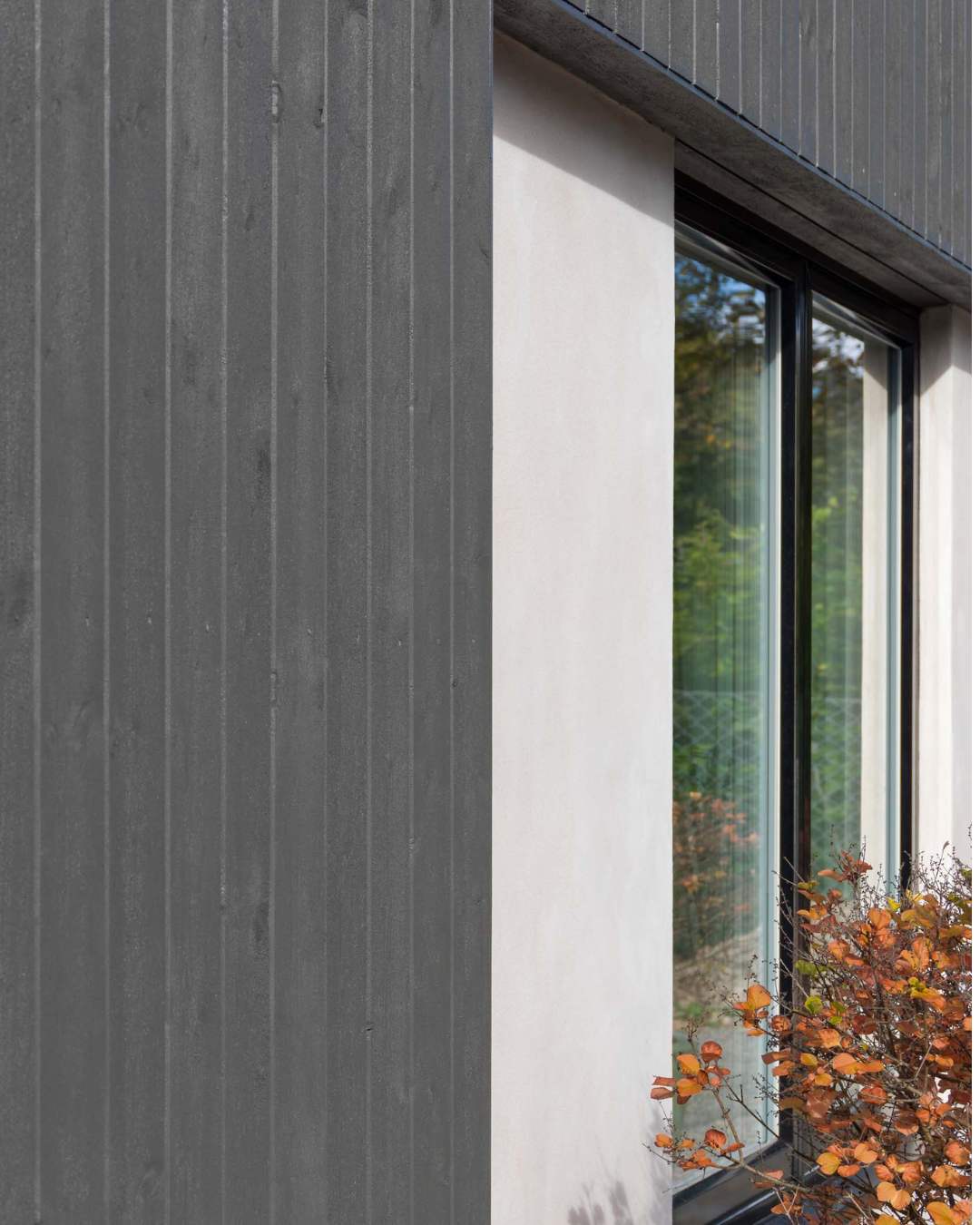 Stående kledning gir et mer moderne og vertikalt uttrykk. Den brukes ofte sammen med profiler som rektangulær eller dobbelfals rettkant.