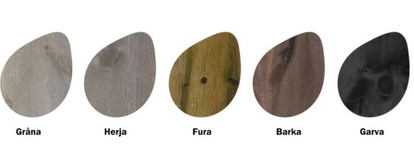 Værbitt kledning leveres i 5 ulike standardfarger: Gråna, Herja, Fura, Barka og Garva.