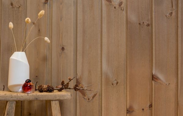 Ferdigbeiset trepanel gir rommet et lunt og levende uttrykk, der treets naturlige struktur og fargespill får skinne. Standardfargene våre er transparente, slik at treverket får vist seg fra sin beste side.