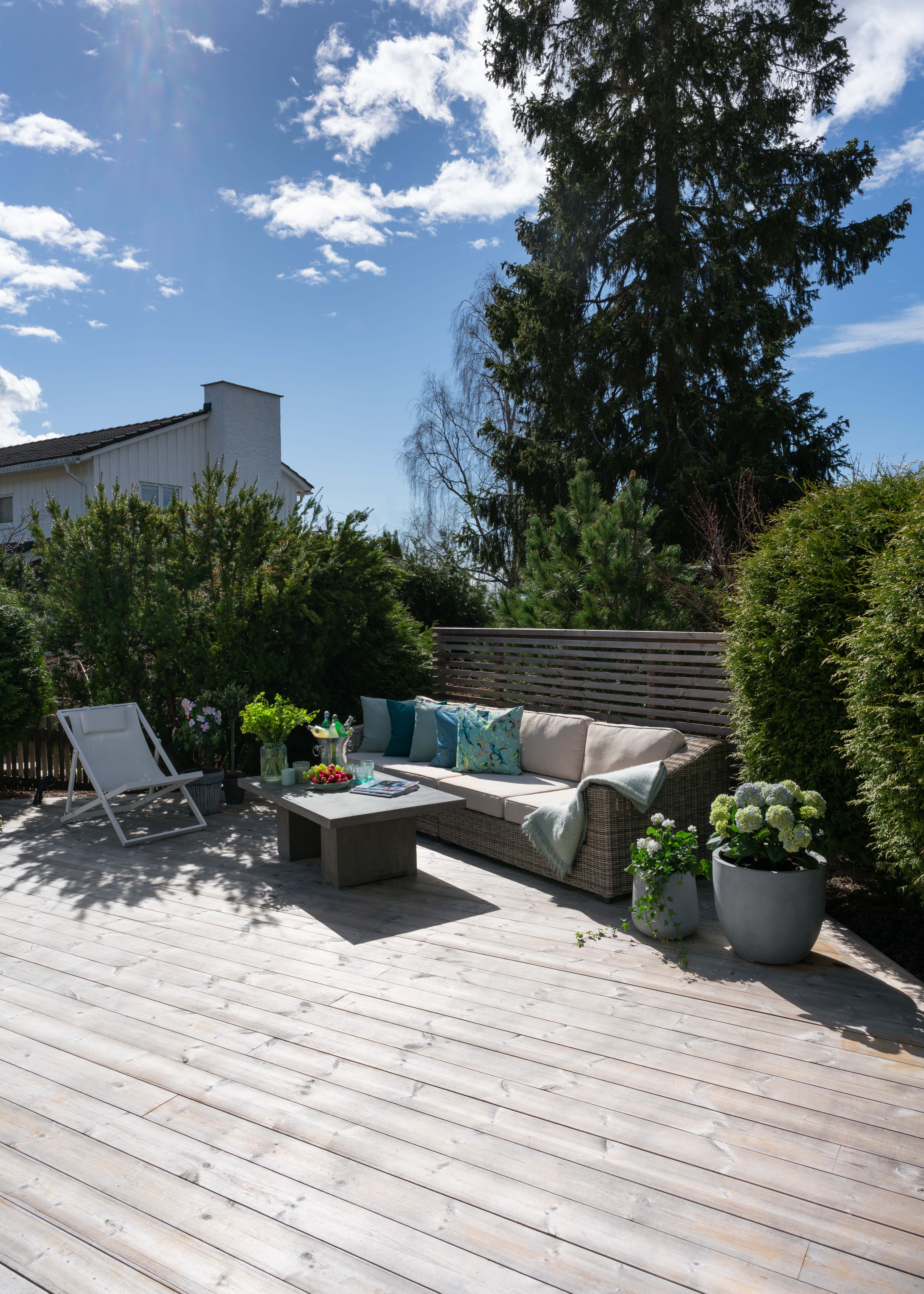 Vakkert, naturlig uttrykk - ønsker du å beholde den gyllenbrune fargen må terrassen behandles.