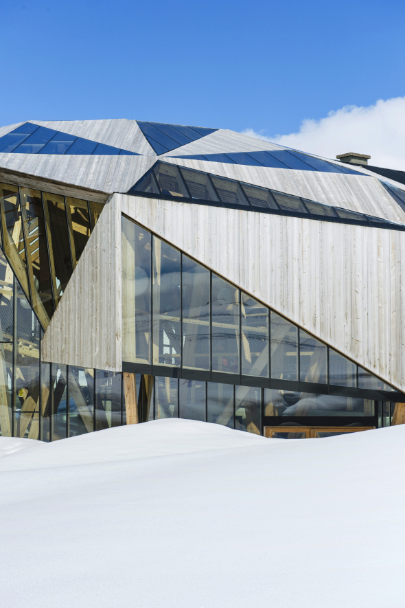 Det nye inngangspartiet til Sognefjellshytta ble åpnet i august 2015, og befinner seg 1450 moh. En unik konstruksjon i limtre binder nå de eksisterende bygningene på Sognefjellshytta sammen til en helhet. Jensen og Skodvin Arkitekter står bak den særegne arkitekturen