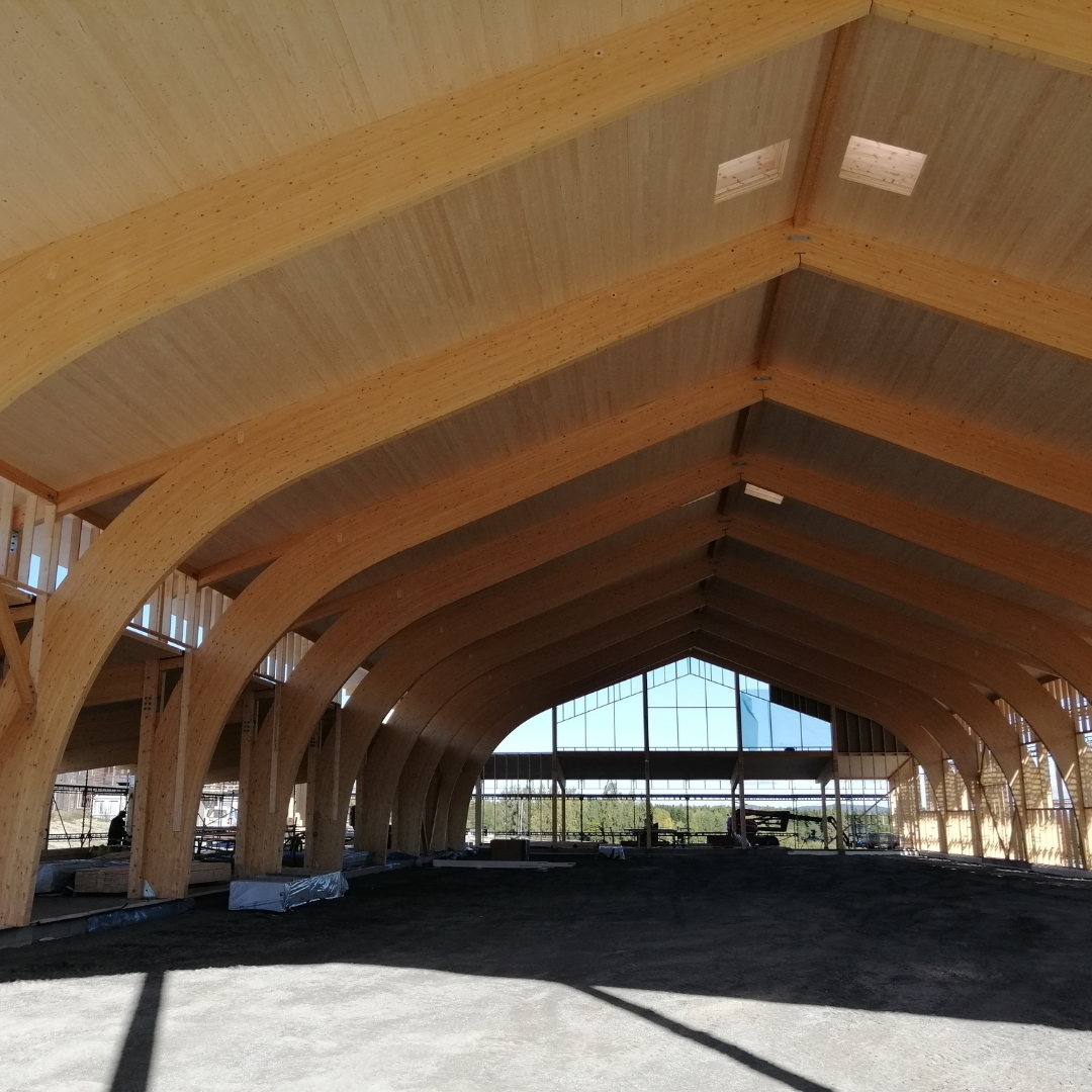 Ridehall fra Moelven Limtre AS, sett fra innsiden.