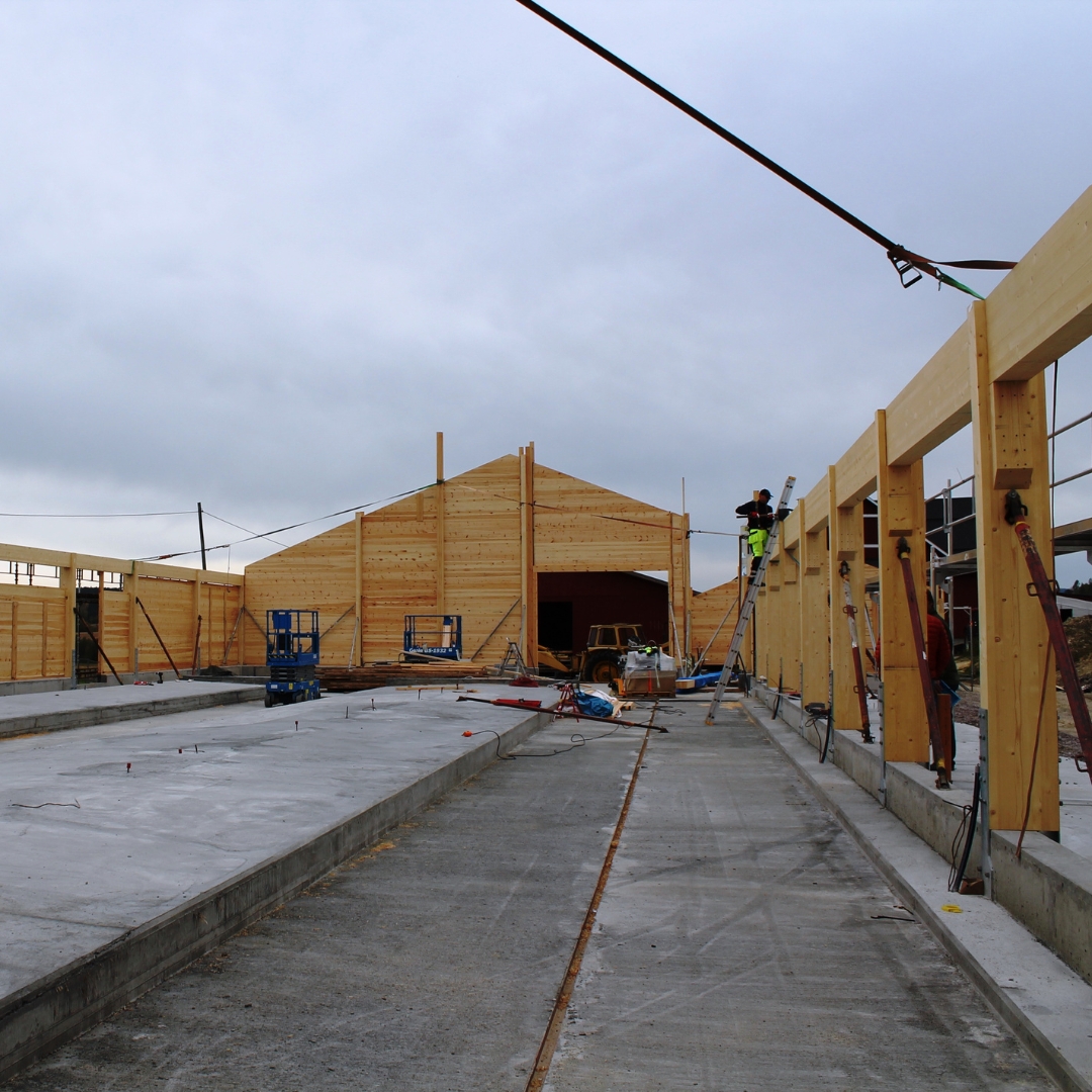 Moelven Limtre har kort produksjonstid og kan levere limtre til landbruksbygget ditt i løpet av noen få uker. Dersom du ønsker, kan vi også montere det for deg med egne montører.
