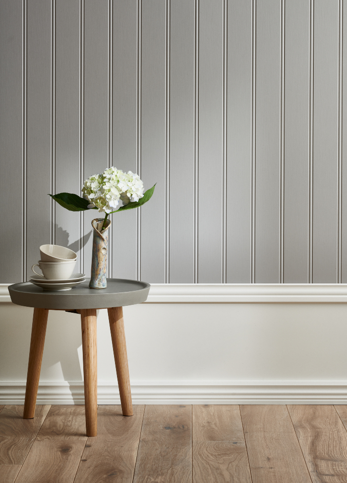Renovera hela väggen med Regina Vägg Dekor för ett snyggt helhetsresultat tillsammans med den höga sockeln.