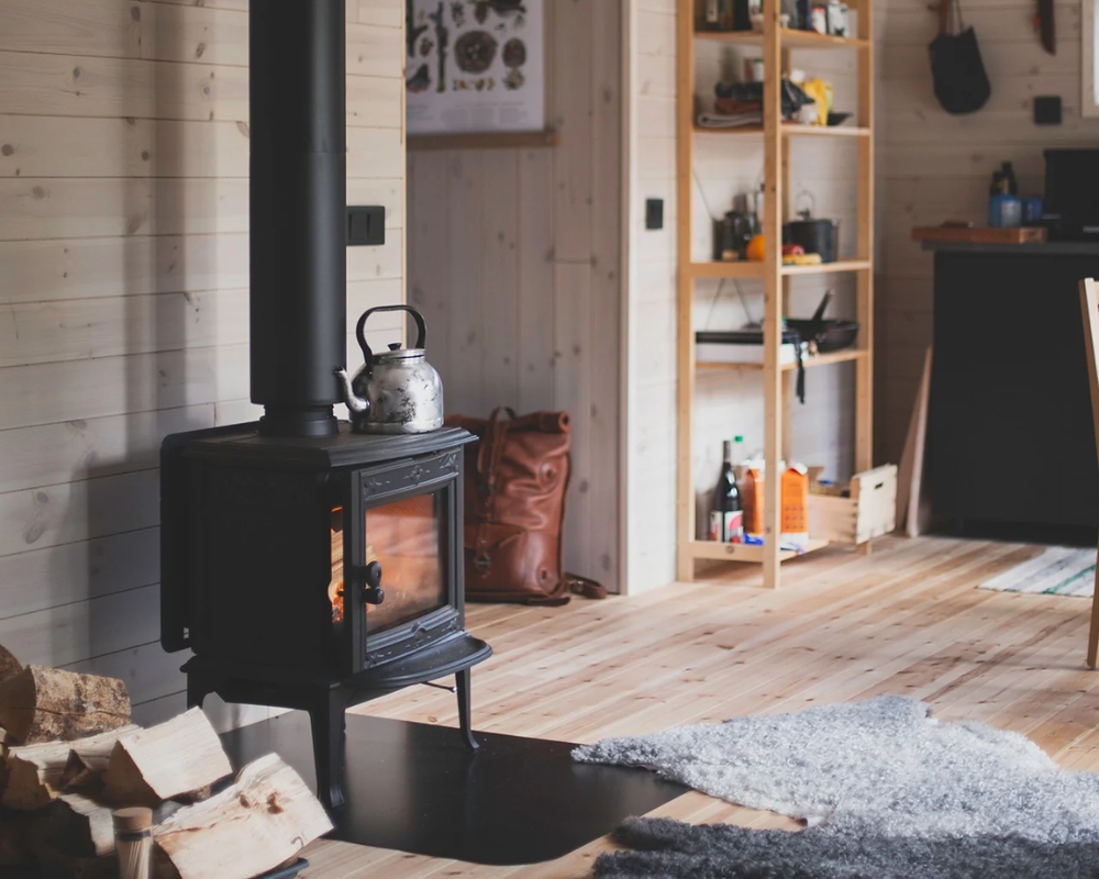Hans inställning är att även om man bygger off-grid och har utedass så kan man skapa en wow-känsla. När man öppnar ytterdörren, kickar av sig skorna, går in i hallen och vidare in i vardagsrummet ska gästerna kunna följa en röd tråd och mötas av samspelet med naturen. Stugan är drygt 47 kvadratmeter med ett lutande pulpettak. I storstugan är takhöjden cirka 3,5 meter och där hittar man både kök och vardagsrum i en öppen planlösning. I centrum står det en gjutjärnskamin som värmer upp stugan och det finns även två mindre sovrum, toalett och ett teknikutrymme.