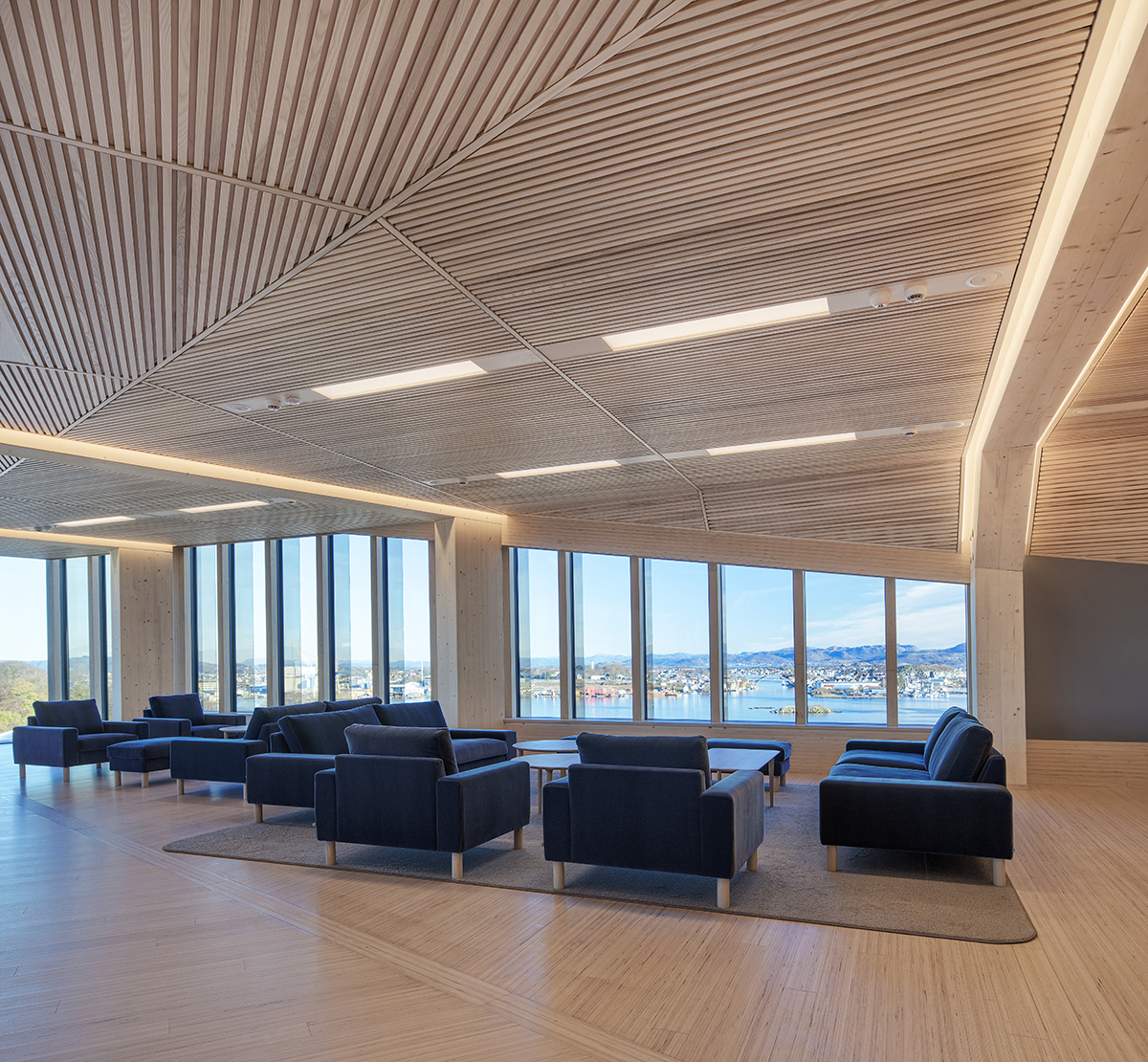 - Som byggherre för Finansparken är jag särskilt nöjd med valet vi gjorde om att bygga i trä. Träet tillför med sina hygroskopiska egenskaper en extra dimension till inomhusklimatet, där det tar upp fuktighet när luftfuktigheten är hög och avger fukt när luftfuktigheten är låg. Dessutom uppfattas träet som varmt och vänligt. Vi blev också fascinerade av hur bra akustiken är i byggnaden. Här är det många lösningar som spelar in och ribbtaket med akustikduk över är en viktig del. Under invigningen hade vi en föreställning av Stavanger Symfoniorkester, och jag tror också att det var mycket nöjda med förhållandena.
