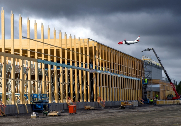 En av Nordens största lager- och logistikanläggningar byggs i Jönköping av limträ från Moelven. Totalt omfattar trästommen över 500 sadelbalkar som är 24 meter långa och nästan 2 meter höga.