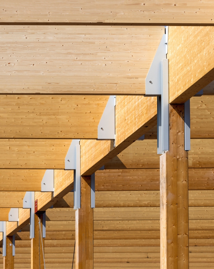 Den bärande konstruktionen på den totalt 86 000 kvadratmeter stora byggnaden består helt av limträ. Ytan motsvarar 13 fotbollsplaner och är en av världens största limträkonstruktioner.