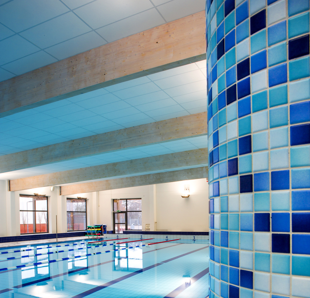 Här finner man en 25 meters bassäng som rymmer 6 banor där alla har en bredd av 2 meter.