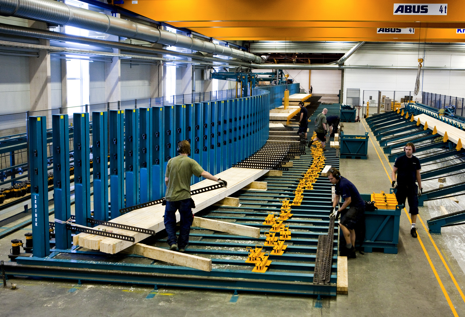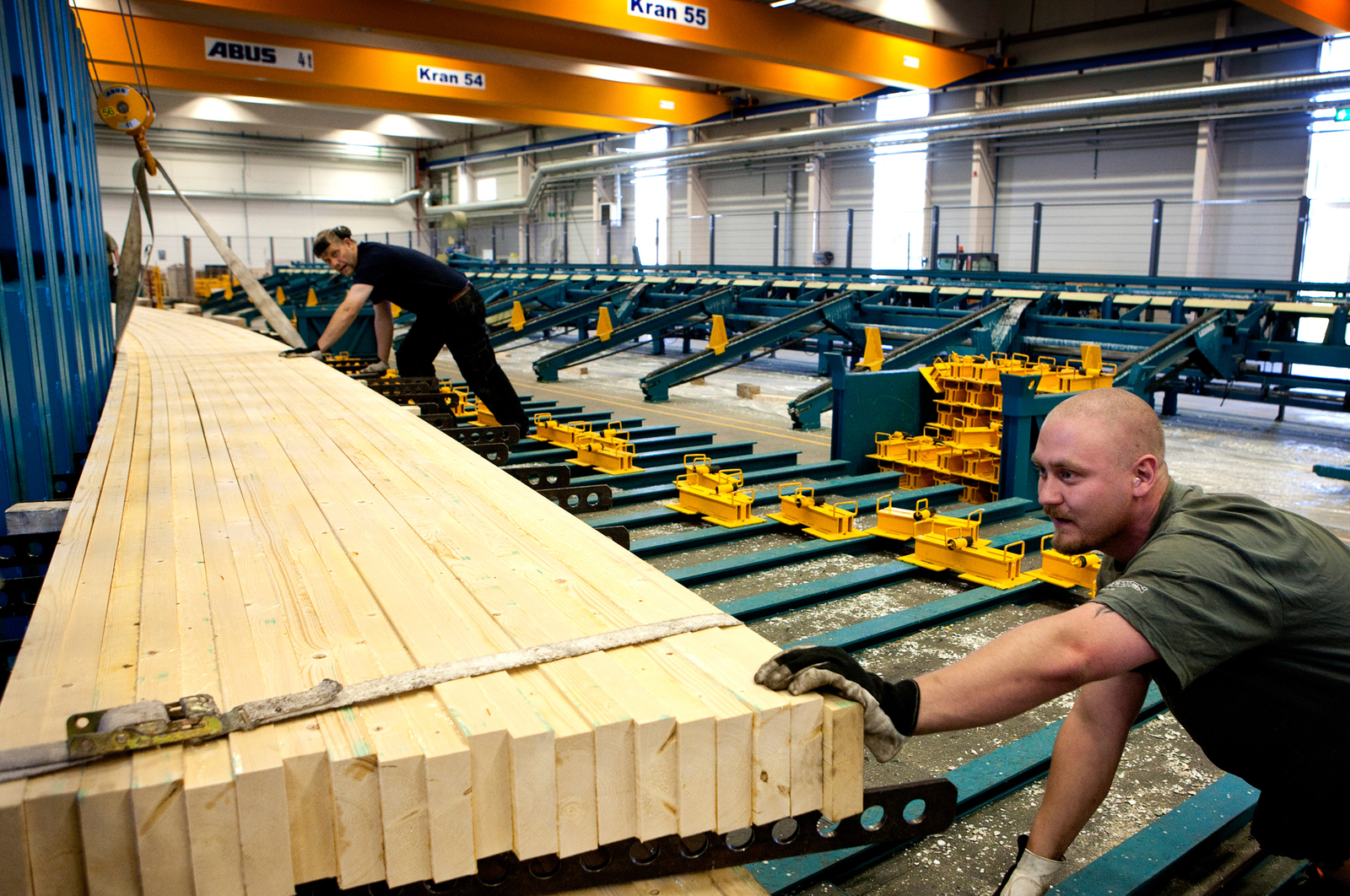 Fabriken, som invigdes hösten 2010, har en kapacitet att tillverka 90 kubikmeter limträ per dag.