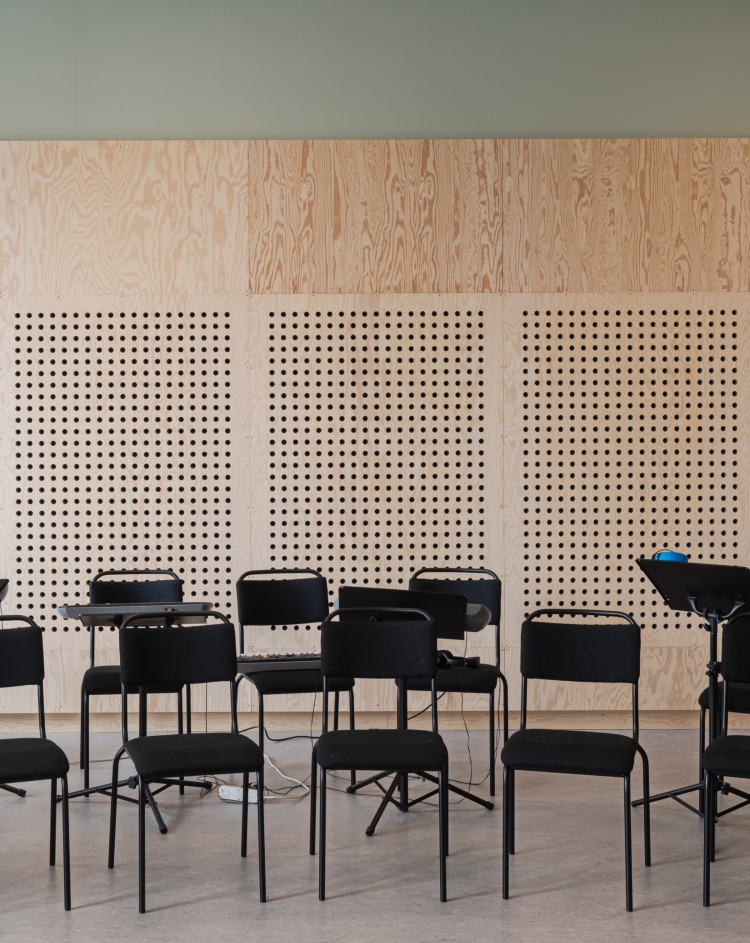 För att skapa extra dynamik och variation sitter Studiopanel med tre olika perforeringar i Silverkällans lokaler. Standardperforeringarna Ø10 CC20 (öppningsgrad 20%) och Ø12 CC20 (öppningsgrad 29%) samt den unikt framtagna perforeringen för Silverkällan Ø26 CC55 (öppningsgrad 18%).