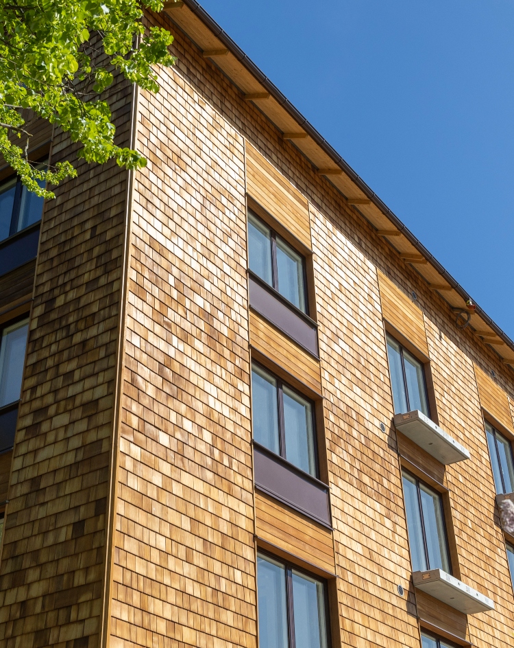 Brandskyddade Cederträspån från Moelven klär fasaderna på Kv Centralköket. Kvarteret är beläget i Sege Park i Malmö. Tillsammans med brandskyddad plywood från Vänerply är fasaden testad och godkänd som ett komplett fasadsystem enligt brandprovet SP Fire 105. Cederträ har naturliga färgvariationer som bidrar till en unik och extra livfull fasad.