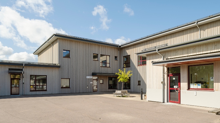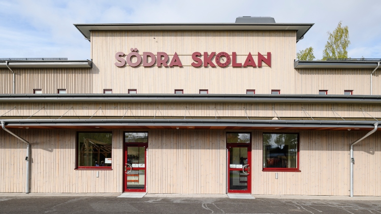 Södra skolan i Grums är beklädd med en ytterpanel från Moelven. Den vämebehandlade furupanelen (ThermoWood) är också industriellt behandlad med patineringsolja. Oljan tillför ett extra skydd och fasaden kommer att åldras naturligt med värdighet.