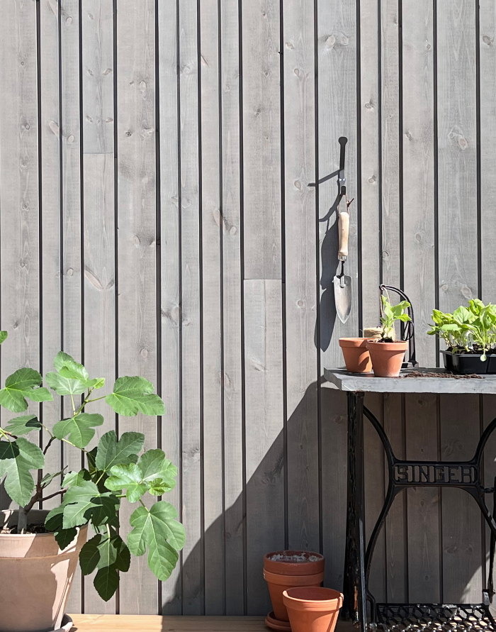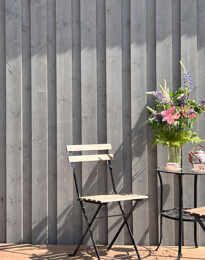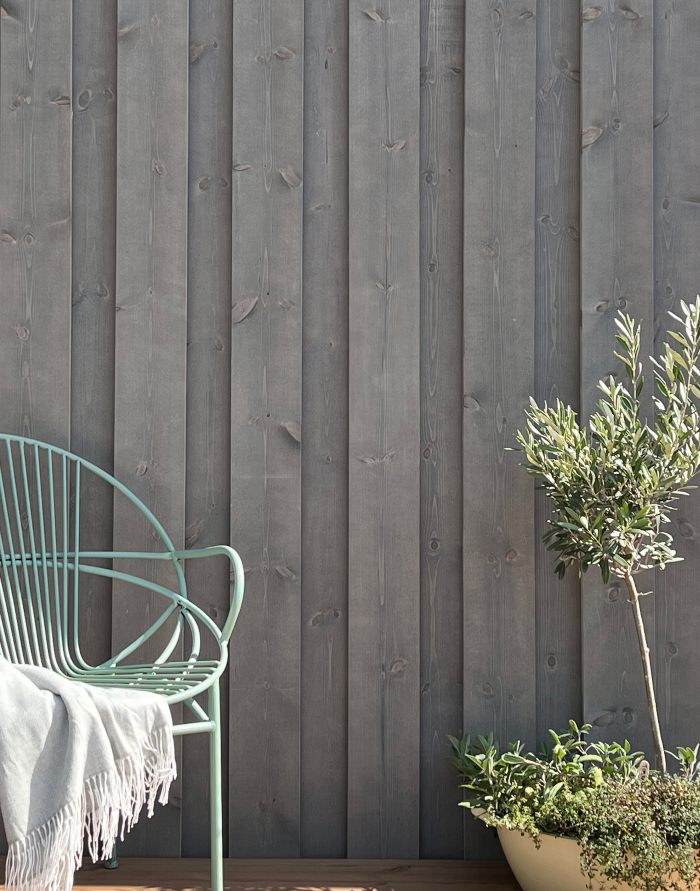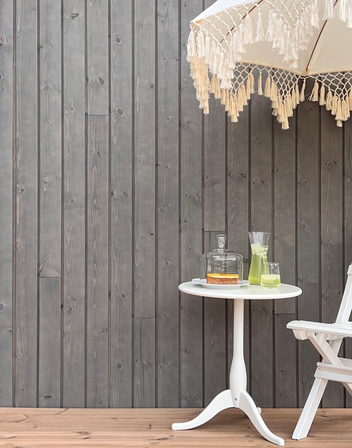 Vi erbjuder Kärnfuru-panel med en industriell ytbehandling i kulör patinagrå eller silver. Det ger panelen bra förutsättning för att åldras snyggt över tid samtidigt som du får ett åldrat utseende redan från start.