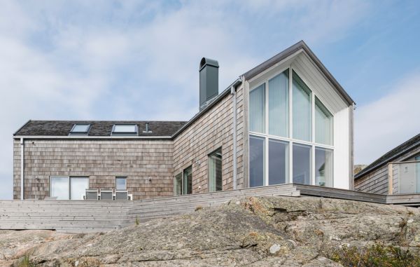 Använd detaljer i rostfritt stål, koppar, plast, RheinZink* och lackad plåt** ihop med Kärnfuru.