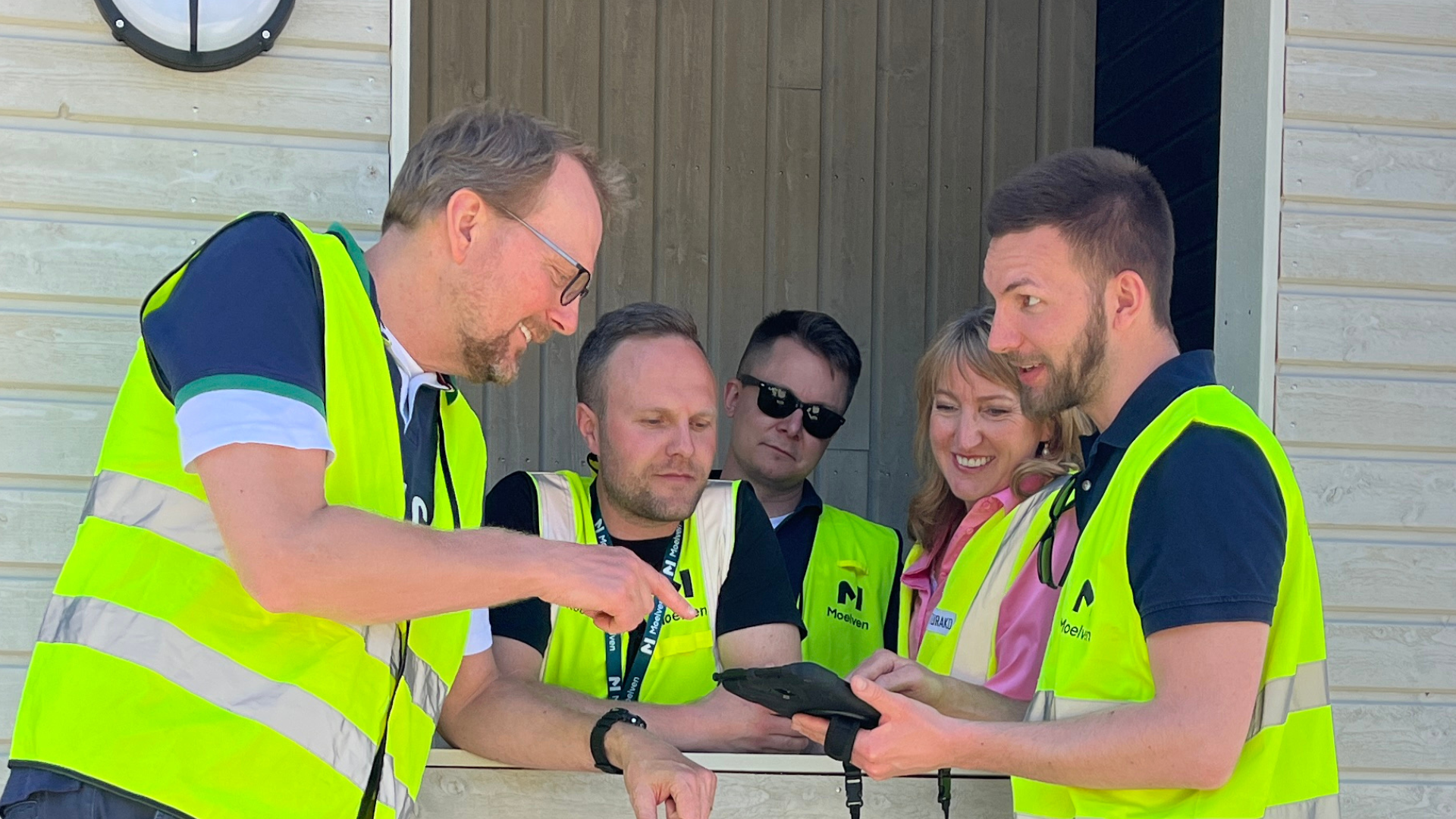 Turako och Moelven Byggmodul har ett långt och gott samarbete. Fr.v. Mats Mattsson (Turako), Robin Sjölin (Moelven), John Geiborg (Moelven), Karin Ankar (Turako) och Josua Franz (Moelven)