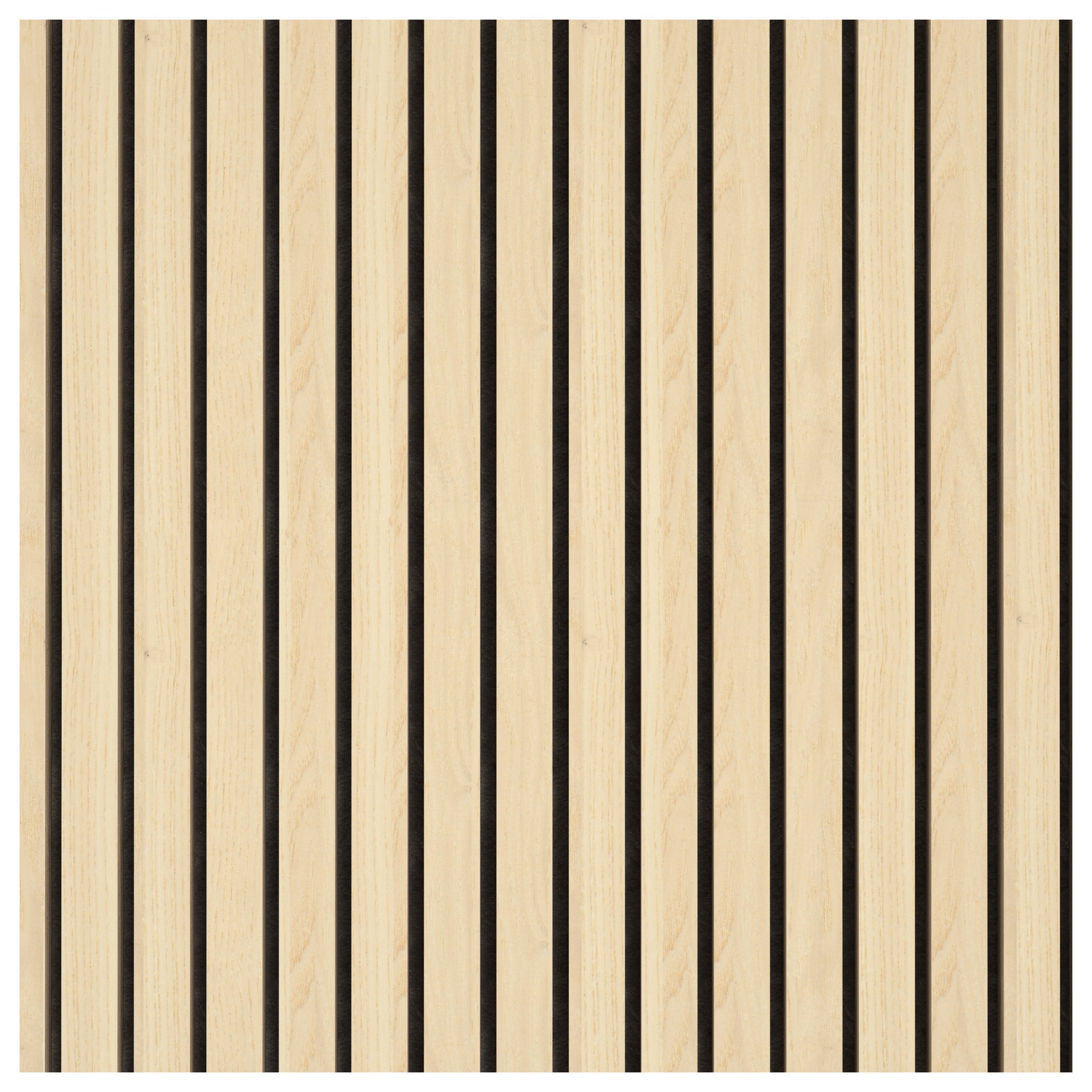 Studio Stripe är en ribbpanel av furuplywood med ett svarvat ytfanér. Design Stringent har likformade ribbor i ett linjärt mönster. Utförandet i Ask Vit är svagt pigmenterad för att förstärka askens naturliga ljushet. Panelen levereras som ett komplett element med integrerad akustikduk i grått eller svart.